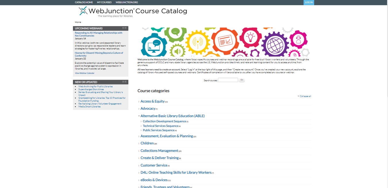 WebJunction course catalog includes the following topics: