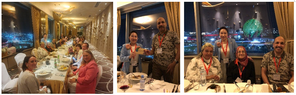 Later that evening, on August 17, 2024, 25 Astana and IFLA colleagues from various countries—including China, Kazakhstan, Egypt, the UK, Netherlands, Italy, Norway, the US, and France—gathered for a memorable Section Dinner at Cloud 9 (Hilton). It was a joyous occasion to deepen friendships, share stories, and celebrate our diverse backgrounds. Heartfelt thanks to everyone for bringing a small souvenir from your workplace or country, and for joining voices in our rendition of “Dreamers”—a beautiful symbol of our collective aspirations. The positive energy and camaraderie from this evening fuelled us for the sessions ahead, inspiring even greater participation and collaboration.